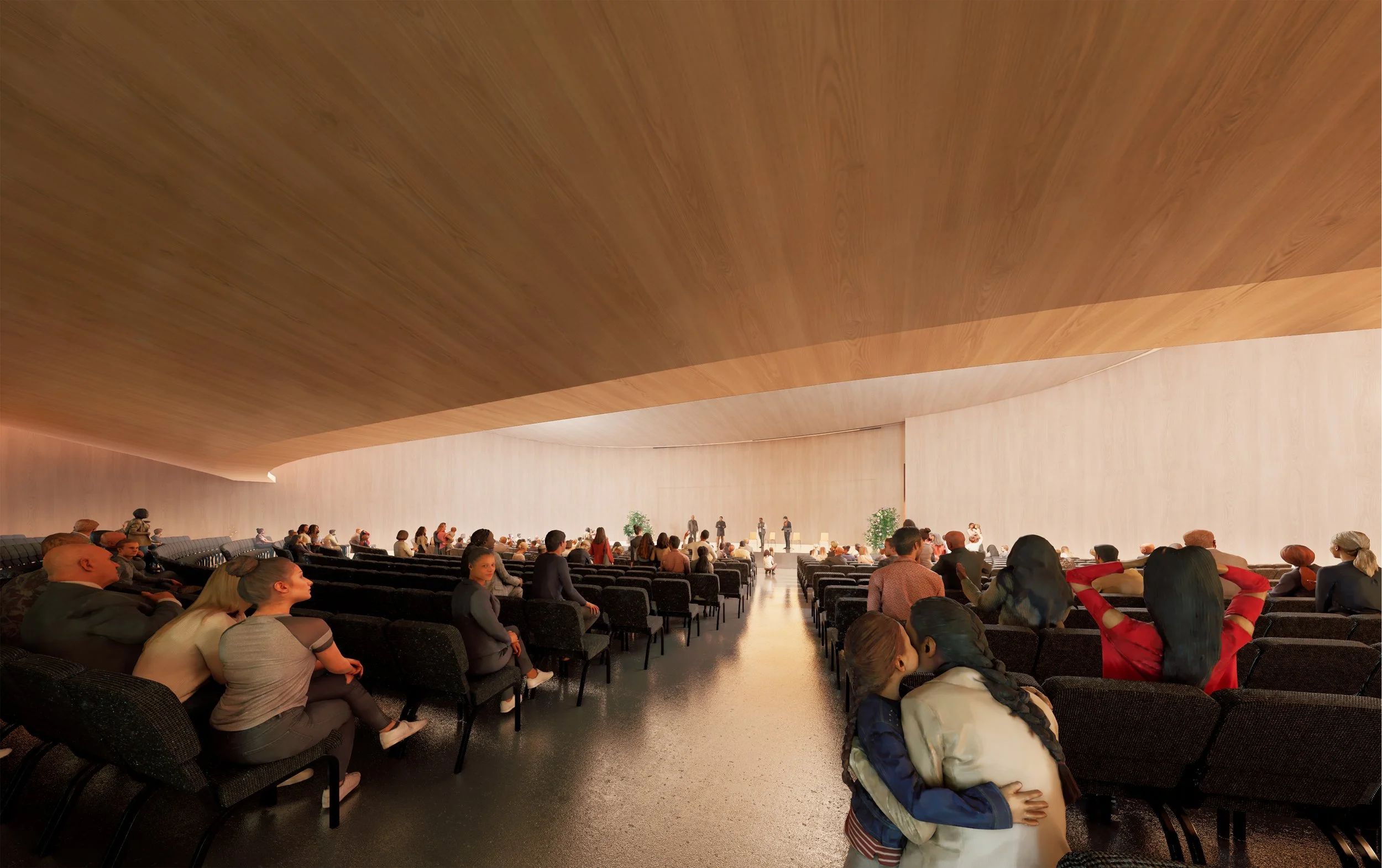 1,500 seat auditorium with multi-level seating for church and community use